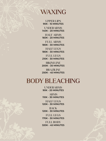 :: Price List :: Waxing and Bleaching