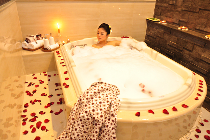 Di lantai dua, tamu bisa menikmati spa area yang dihias artwork ukiran kayu jati dengan nuansa pencahayaan yang nyaman sehingga tamu bisa lebih rileks dalam menjalankan perawatan pilihannya yang dilengkapi fasilitas 6 ruang perawatan single, 1 ruang perawatan couple, berendam jacuzi yang cukup luas,ruang facial dan slimming dengan peralatan modern.
